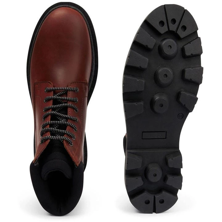 New casual approach on HUGO boot. Full pull up leather laced boot upper design enriched by HUGO logo on the padded collar. Chunky rubber sole that assures a modern and contemporary look and feel to the style.